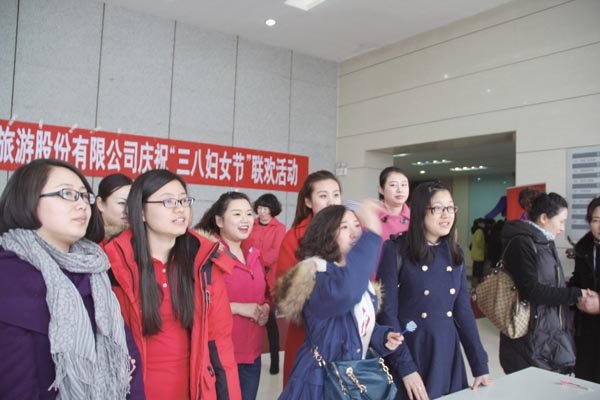 2014年3月7日下午,来自公司售票、检票、统计、后勤、旅行社及总部各部门各岗位的90余名女员工在公司办公楼一楼大厅汇聚一堂,参加“三八节”联欢活动。公司为女员工准备了丰富多彩的娱乐竞赛活动。工会主席李明同志代表公司向全体女员工表达了节日的祝贺,希望全体女员工在各自的工作岗位上勤奋工作,为公司早日成为具有国际影响力的一流旅游企业做出新的贡献。
