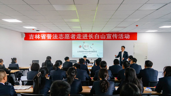 本次讲座主要从合同签订与合同管理的风险防范、公司缴纳工伤保险的重要性等方面讲解了如何做好公司在经营中的法律风险防范,李伟律师还通过自己亲身经历的部分典型案例进行了生动介绍,讲座内容旁征博引,深入浅出,为与会人员讲授了一堂精彩的普法课。讲座过后,公司同长白山司法局、吉林衡丰律师事务所共同建立了普法微信群,公司员工无论在工作或生活中遇到的法律问题都可以随时进行免费法律咨询。