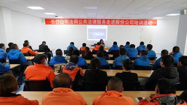 10月18日下午,公司邀请长白山司法局法律纠纷调解中心王主任以及吉林省法律援助中心杨律师在公司三楼会议室开展了公共法律服务“天池和”APP宣传讲解培训以及如何处理应对突发暴力事件。景区一体化各部门经理、班组长、投诉处理人员,以及旅行社、酒店和温泉相关人员,共80余人参加培训活动。