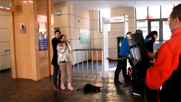 演练模拟两名“暴恐分子”出现在池西游客服务中心,安检员发现险情第一时间上报,并迅速启动反恐防暴应急预案,同时向公安机关报警,全面进入应急状态。
