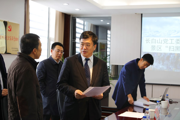 2019年3月31日上午,长白山管委会纪检监察工委张广辉书记一行,长白山景区开展调研扫黑除恶工作,并与公司扫黑除恶相关工作人员进行座谈。公司分管扫黑除恶工作的高管和各部门负责扫黑除恶的中层、主管16人参加调研。公司纪委书记纪景臣、副总经理孙青春、党群部部长张光辉对开展扫黑除恶相关工作进行了汇报。